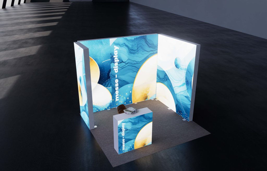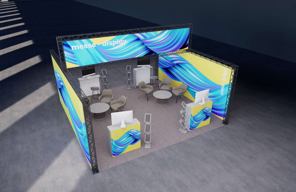 In addition to constructing exhibition stands, we are offering a full range of advertising materials, such as CROWN Premium Displays for exhibition stands, roll-up-banners, event flags, brochure holders, info displays and info desks.